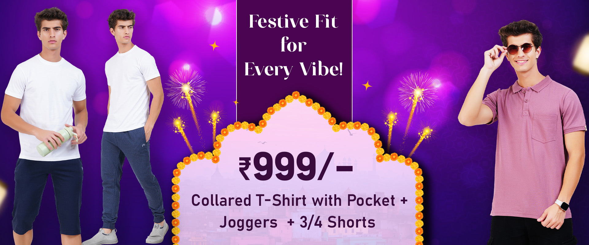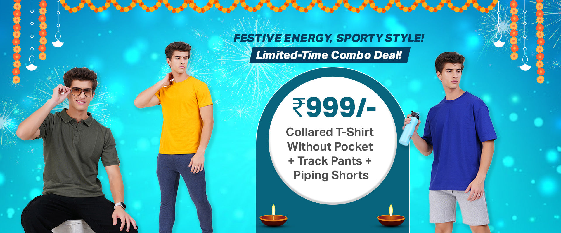 Everyday essentials — T-shirts, shorts, joggers & track pants designed for life on the go.