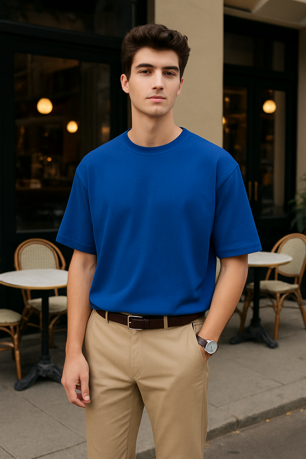 Oversized 100% Cotton T-Shirt – Indigo | Deep Tone Casual Classic