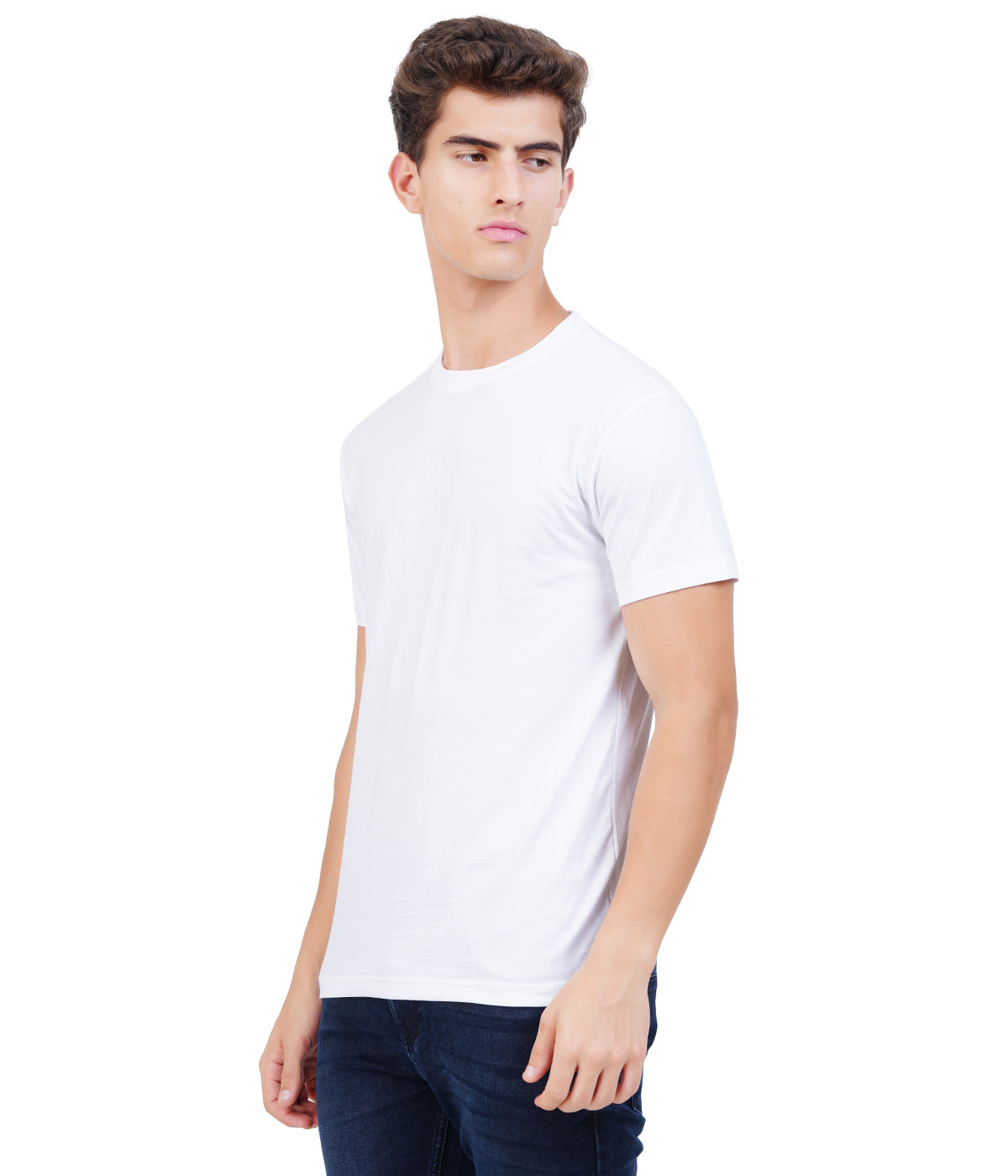 Simple yet stylish, this White Round Neck Cotton T-Shirt is a wardrobe must-have. Made with bio-wash single jersey cotton, it feels ultra-soft on your skin and keeps you cool all day. Perfect for layering, lounging, or everyday wear, this tee offers effortless style and unmatched comfort.